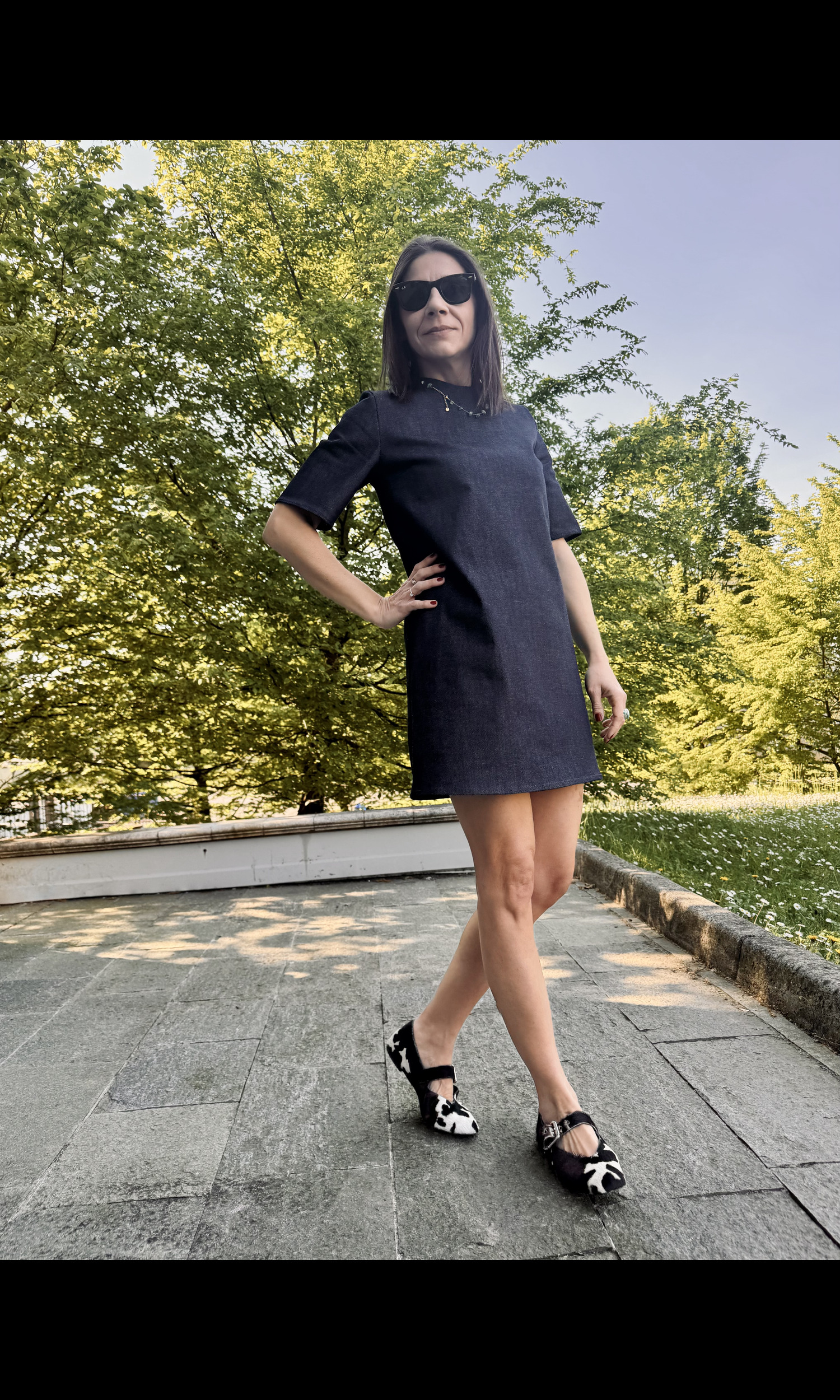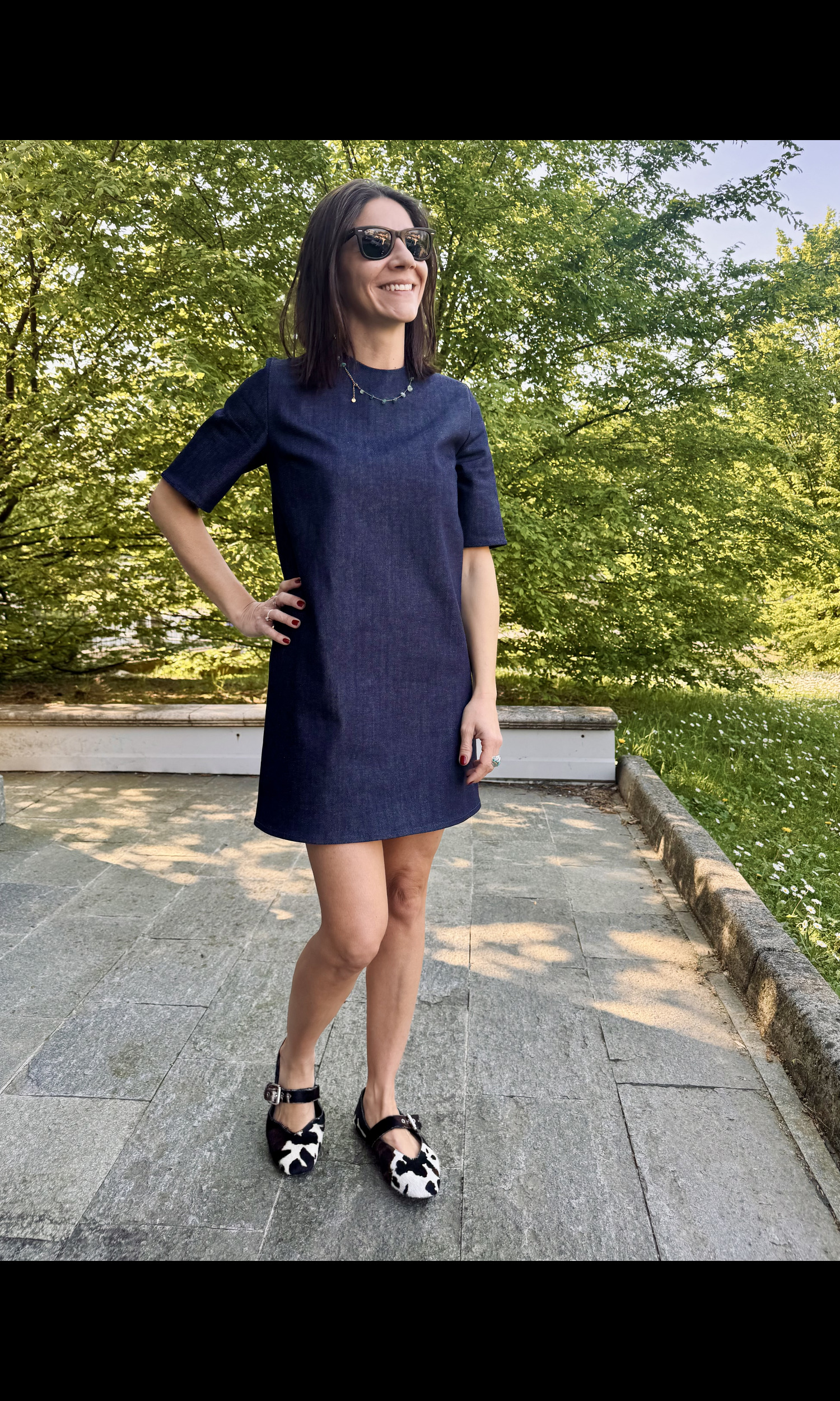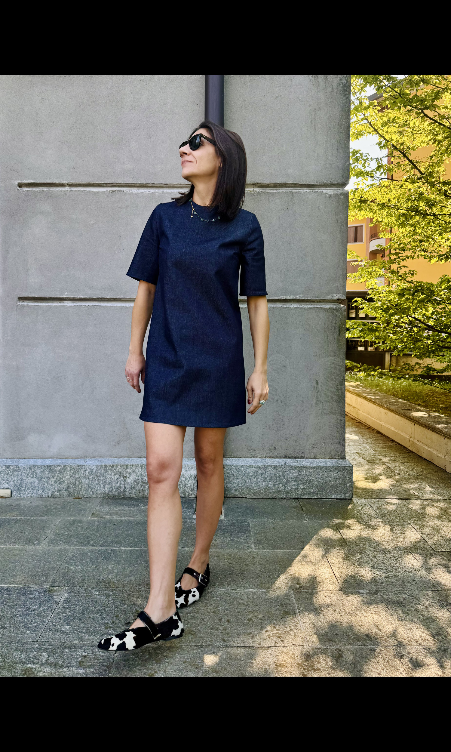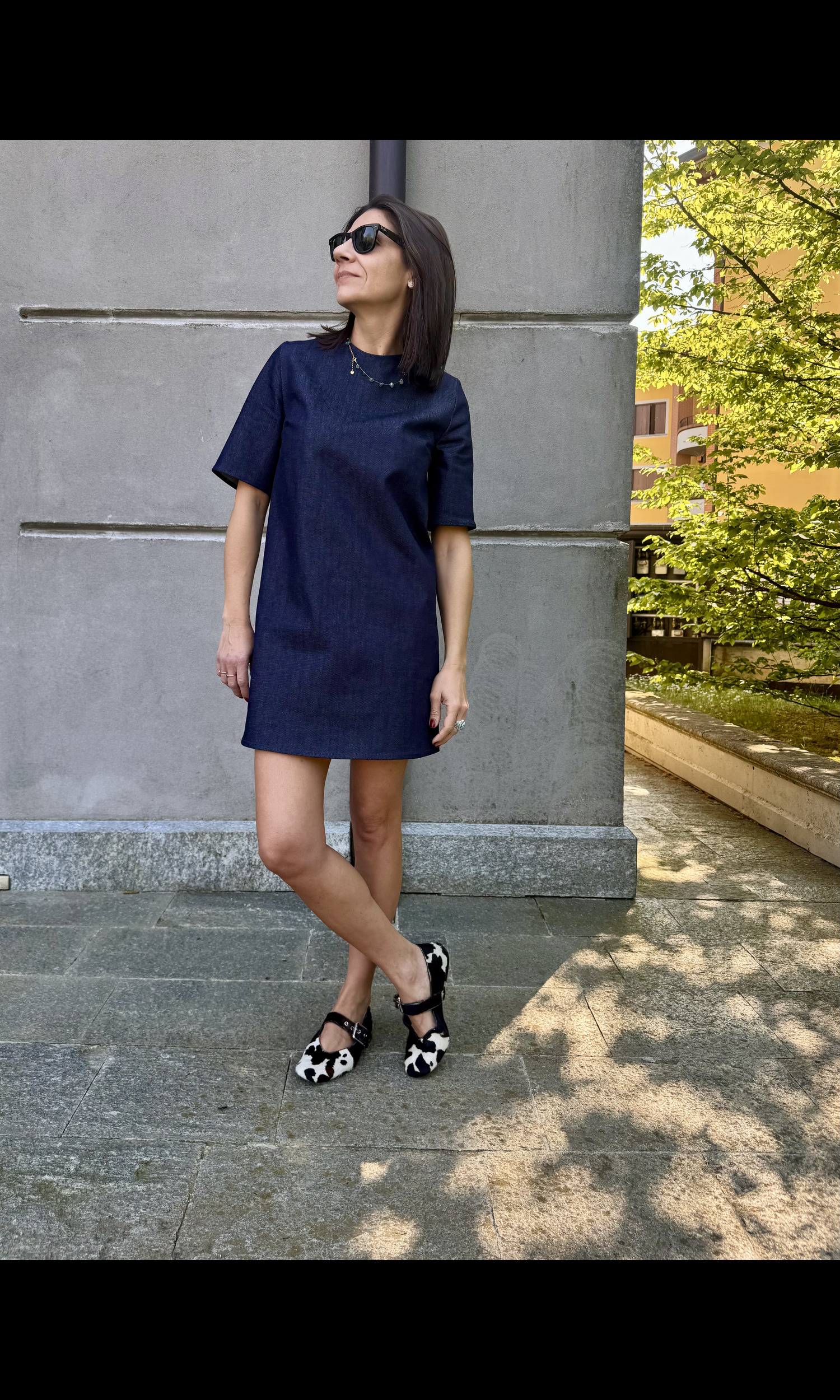 Abito dal taglio dritto, le pinces sul seno fanno sottolineare la forma del corpo,