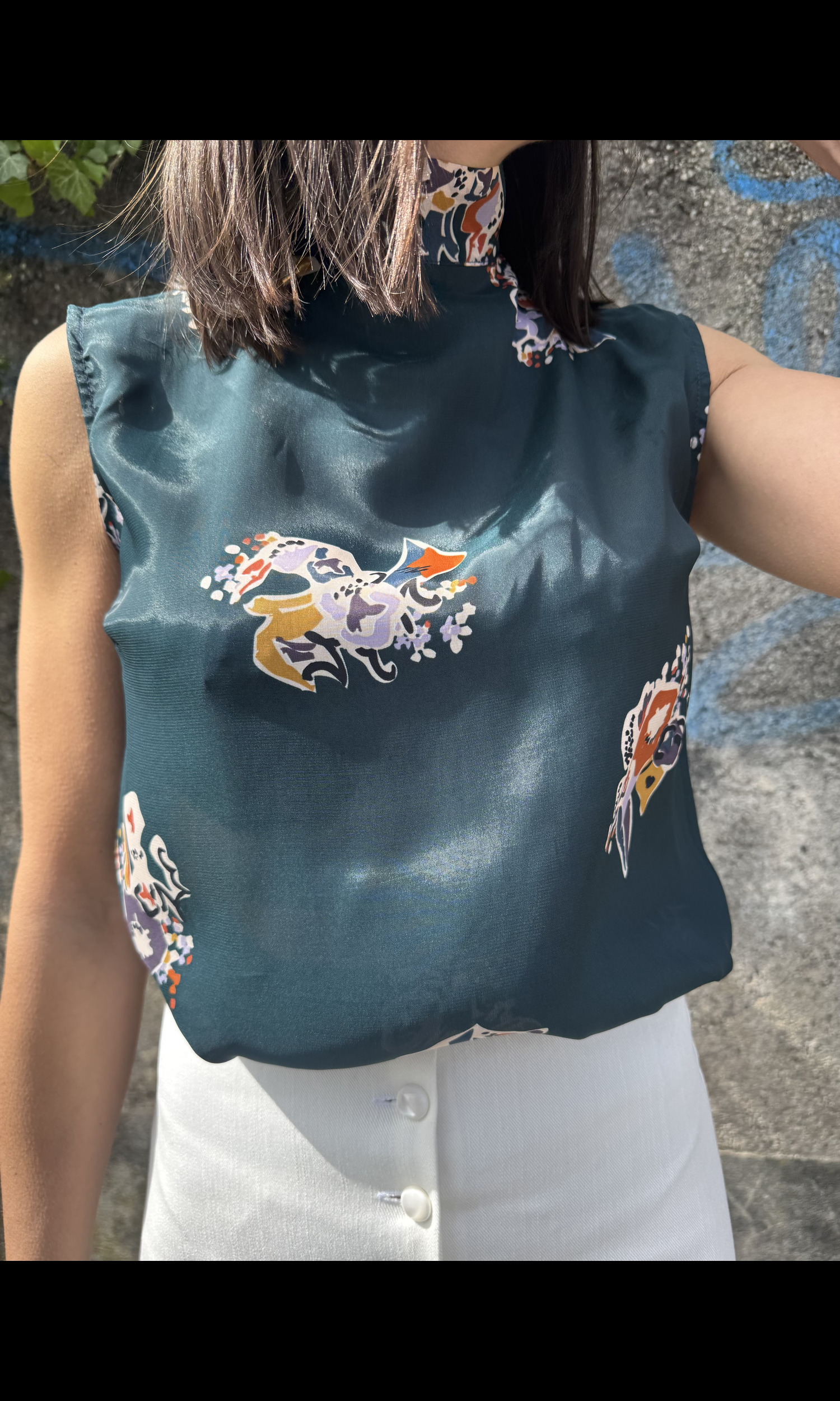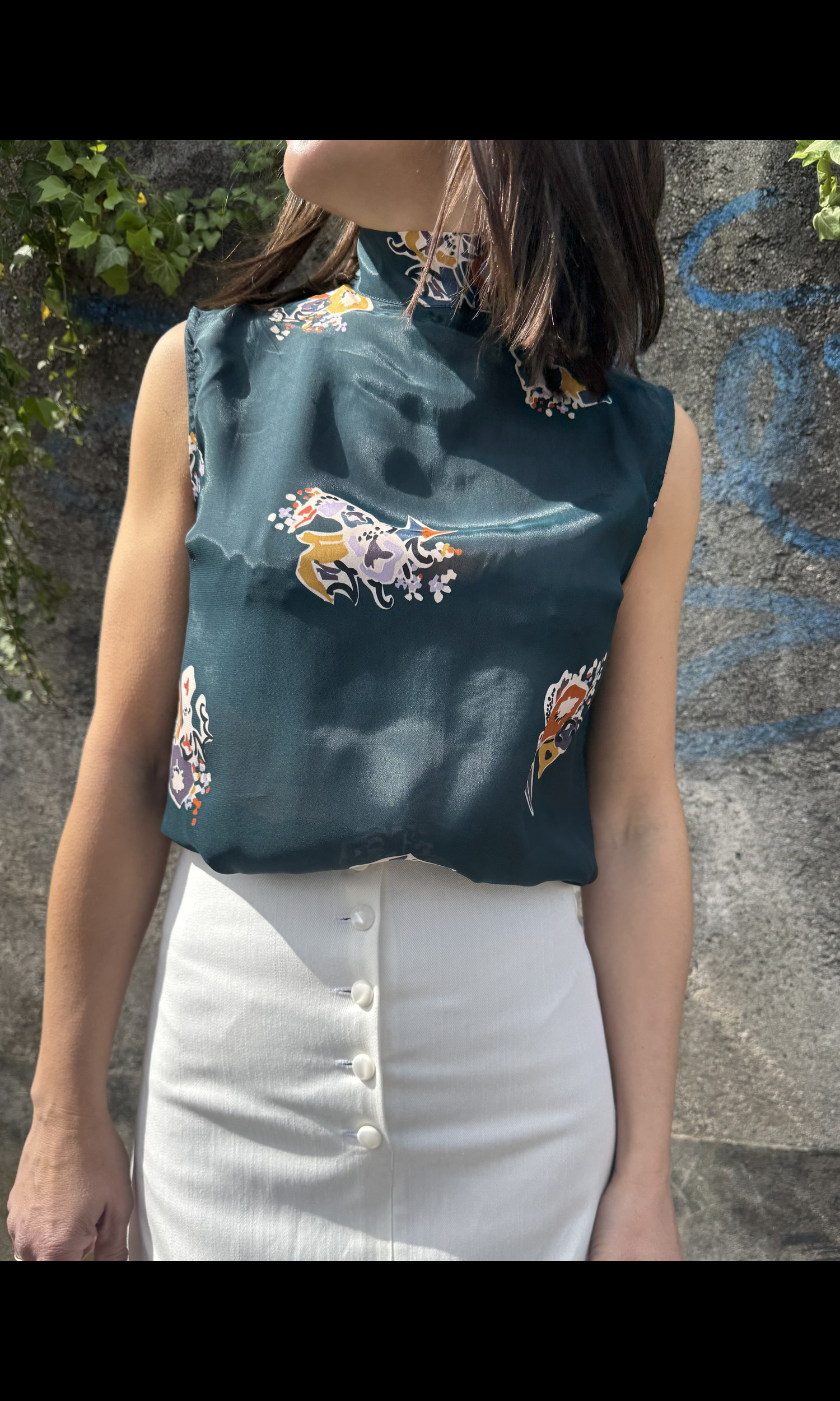 Blusa fedra seta petrolio