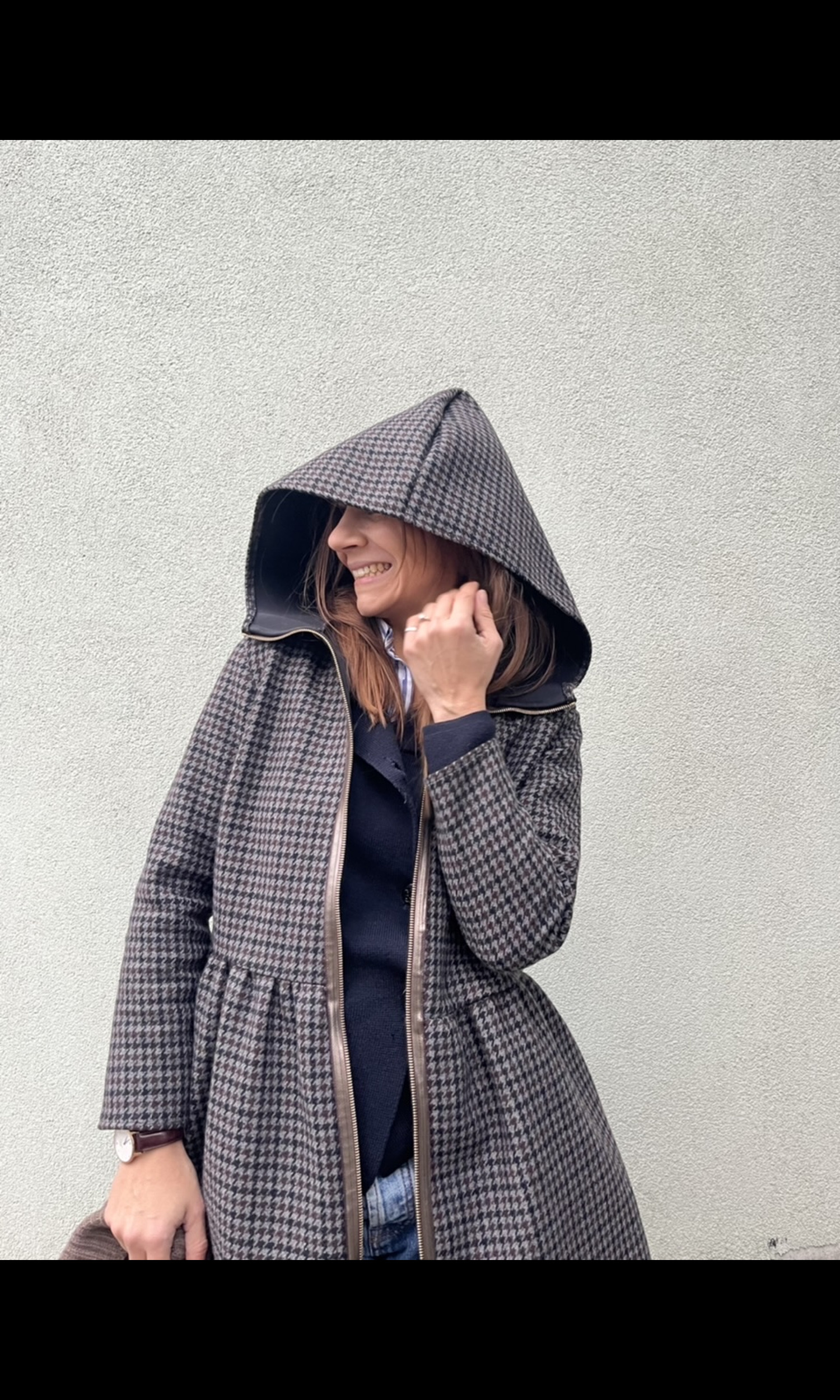 Con un cappuccio accogliente e una lampo speciale come chiusura.