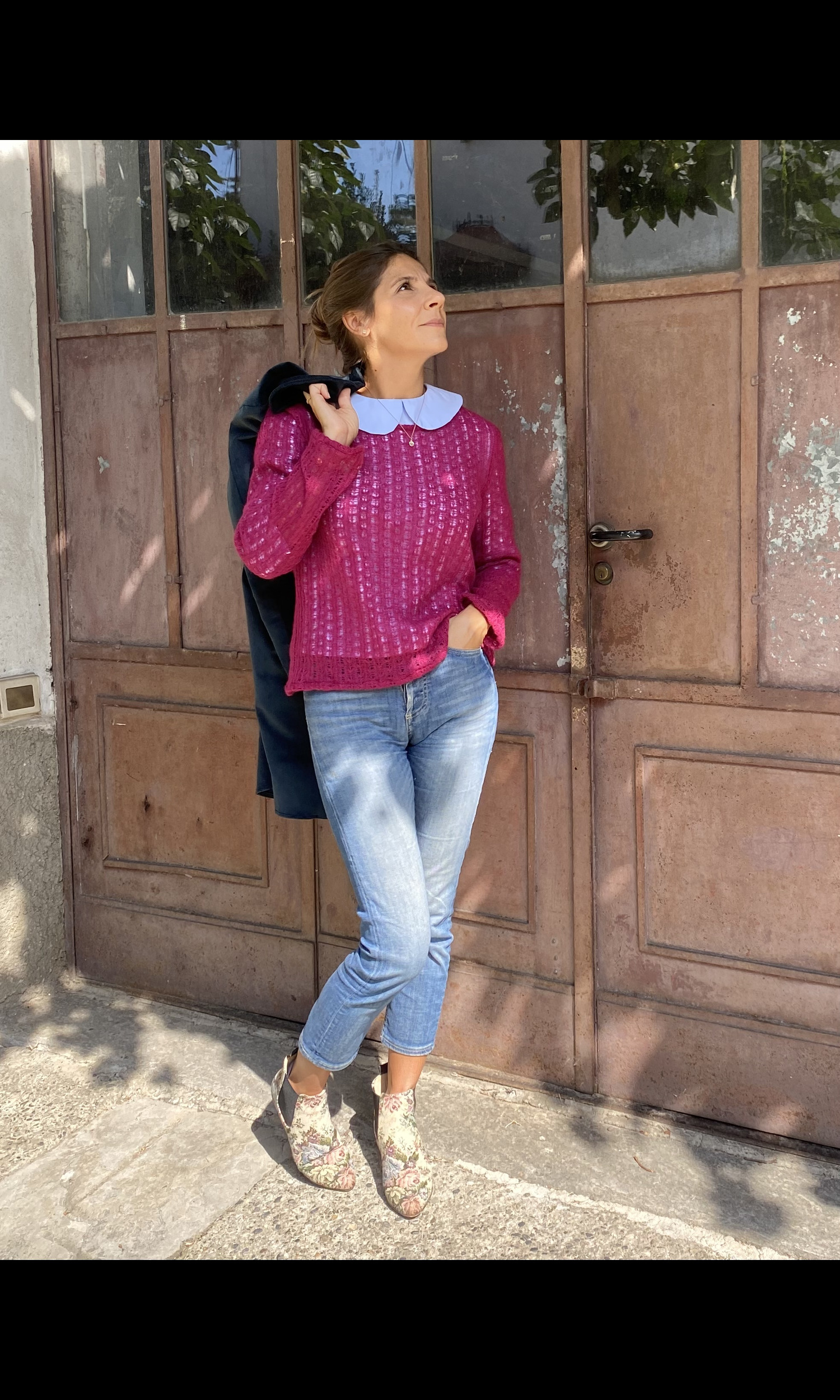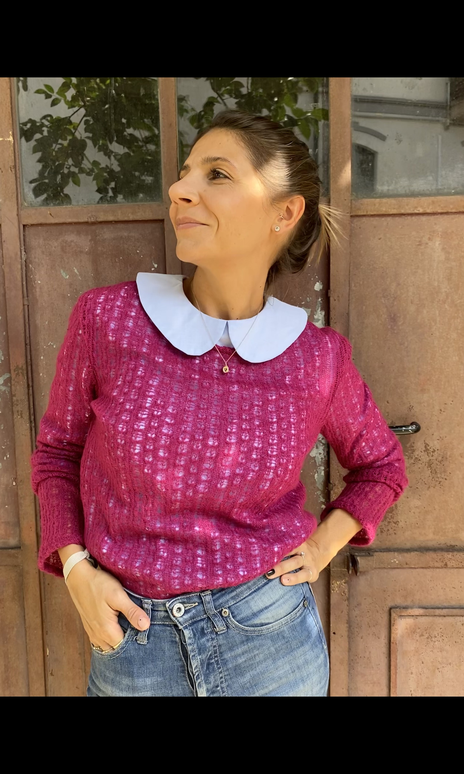 La indossi ora da sola, in autunno e inverno sotto una giacca o sotto un cardigan in lana.
