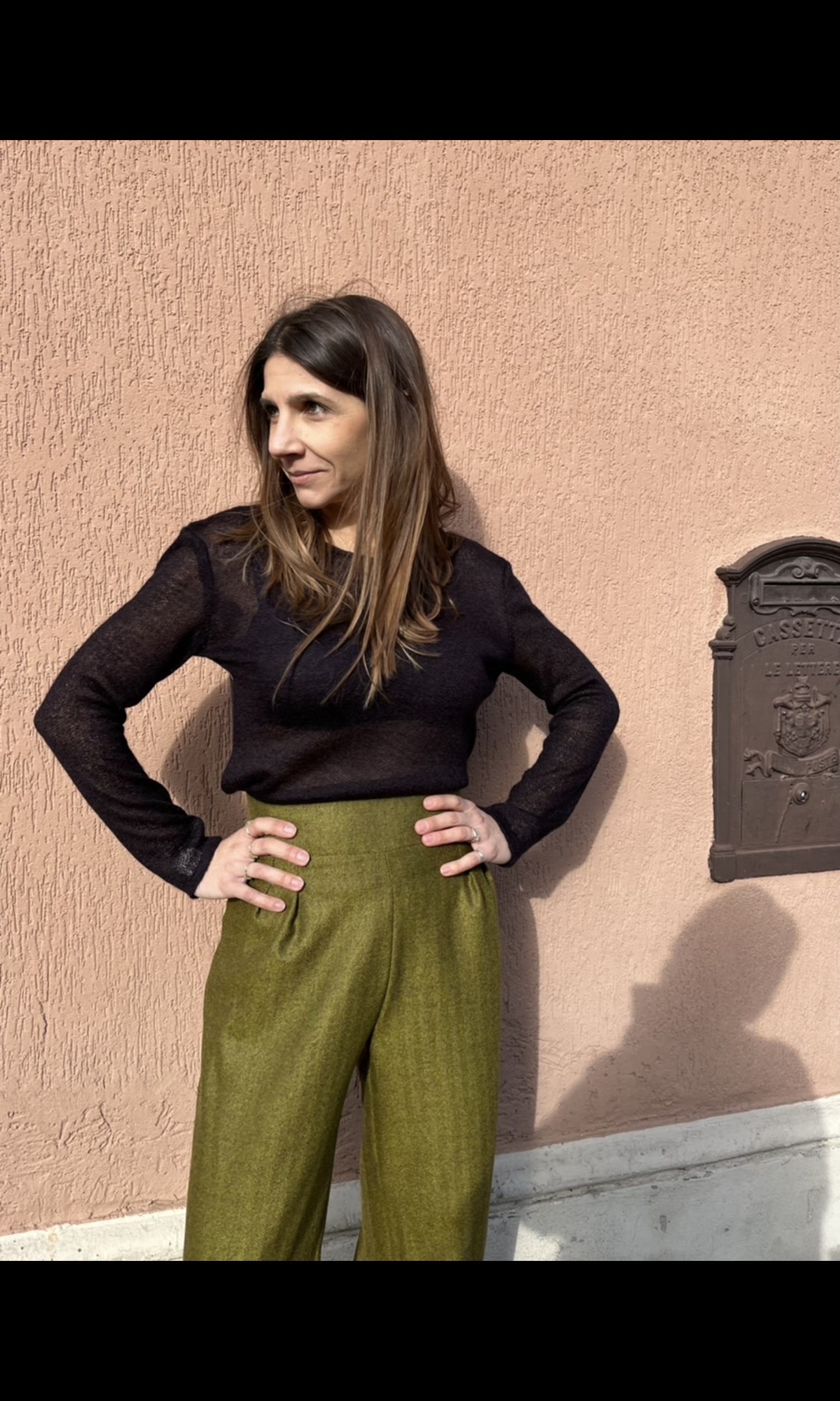 A vita alta e con le pinces.